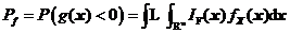 假設含n維相關正態基本隨機變量結構的極限狀態函數為,則結構的失效域。依據失效概率的定義,相關正態變量情況下的失效概率可表示為失效域的指示函數的聯合概率密度函數的乘積在維實數空間中的積分,如式所示。