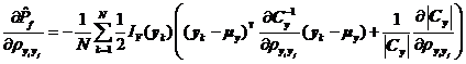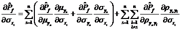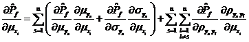 利用式~,可將獨立正態變量空間的分布參數對相關正態變量空間分布參數的偏導數全部解析地求出,如式~所示。