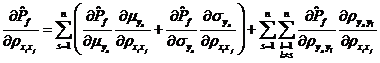 與獨立變量情況類似,變量相關情況下的可靠性試驗靈敏度定義為失效概率對基本變量分布參數的偏導數,以(對于相關正態變量,表示)記第i個基本變量的分布參數,可得的可靠性試驗靈敏度如式所示。