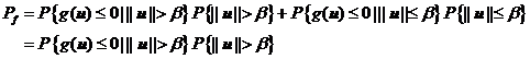維獨立標準正態空間,記安全域內超球的半徑,記標準正態空間的極限狀態函數,F記失效域,則失效概率可由全概率公式寫成下列形式: