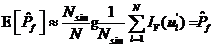 對式所示的失效概率估計值求數學期望和方差分別有以下兩式成立。