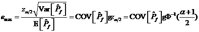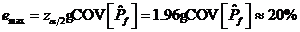如果將失效概率估計值的變異系數設置為0.1,則在給定95%的置信水平的情況下失效概率相對誤差的極限值為[5]