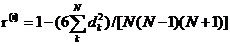 其中是兩個樣本排列的序差,為樣本容量。顯然是一個維的對稱矩陣,并且中各列間不存在統計相關時是一個單位陣。