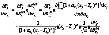 根據復合函數求導法則容易得到模糊隨機失效概率對基本變量隸屬函數分布參數的可靠性試驗靈敏度如式、所示。