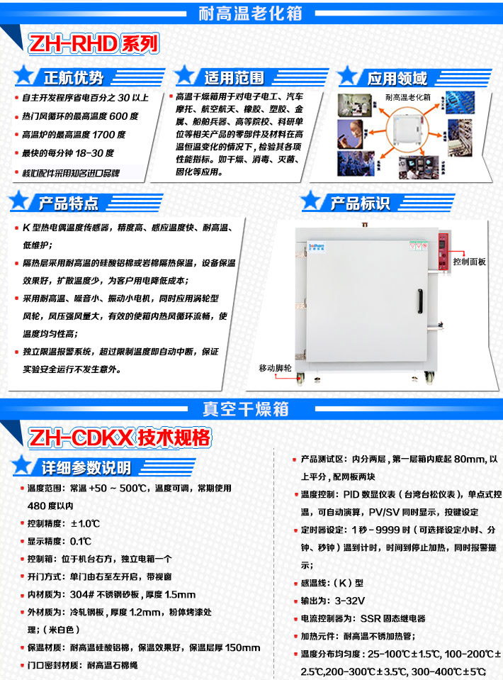 箱體結構:高溫老化箱有大型觀測視窗附照明燈保持箱內明亮,且利用鋼化玻璃,隨時清晰的觀測箱內狀況。熱風循環系統由能在高溫下連續運轉的風機和特殊風道組成,工作室內溫度均勻。老化箱裝置配有低轉速轉盤。
