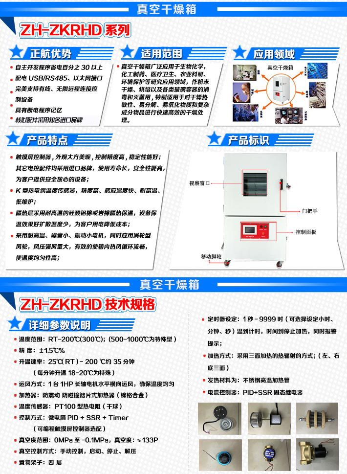 鼓風(fēng)真空試驗(yàn)箱廣泛應(yīng)用于生物化學(xué),化工制藥、醫(yī)療衛(wèi)生、農(nóng)業(yè)科研、環(huán)境保護(hù)等研究應(yīng)用領(lǐng)域,作粉末干燥、烘培以及各類(lèi)玻璃容器的消毒和殺菌用。特別適合于對(duì)干燥熱敏性、易分解、易氧化物質(zhì)和復(fù)雜成分物品進(jìn)行快速有效的干燥處理。